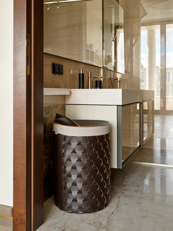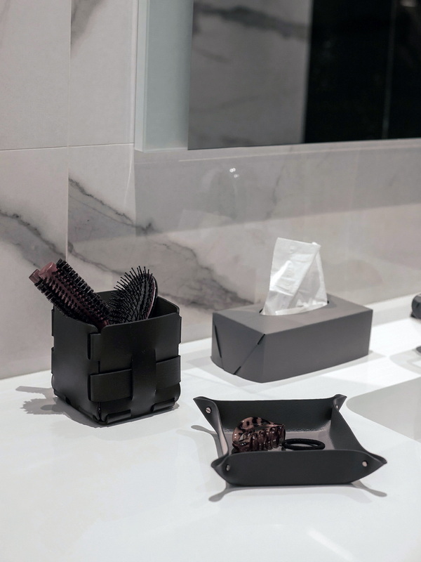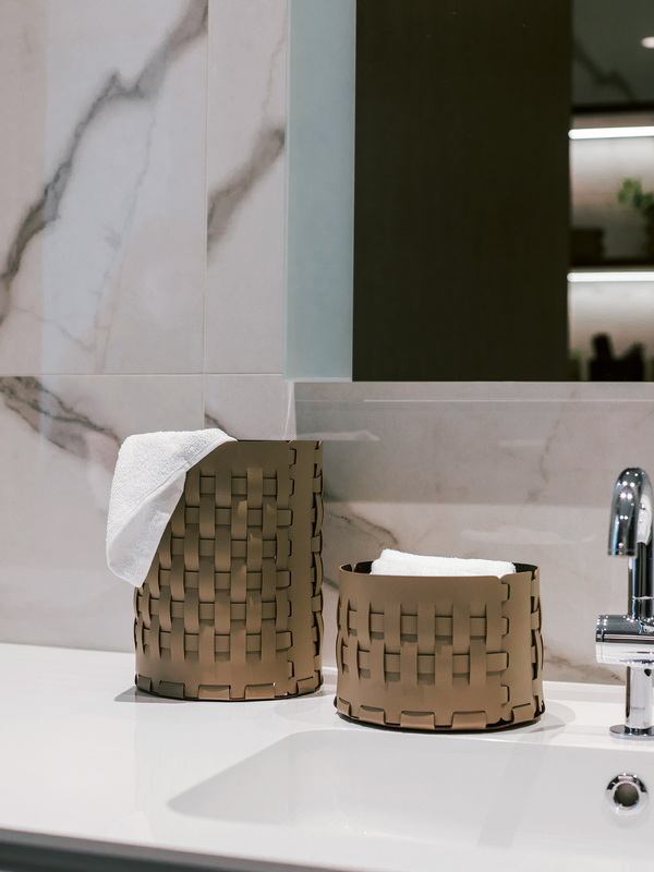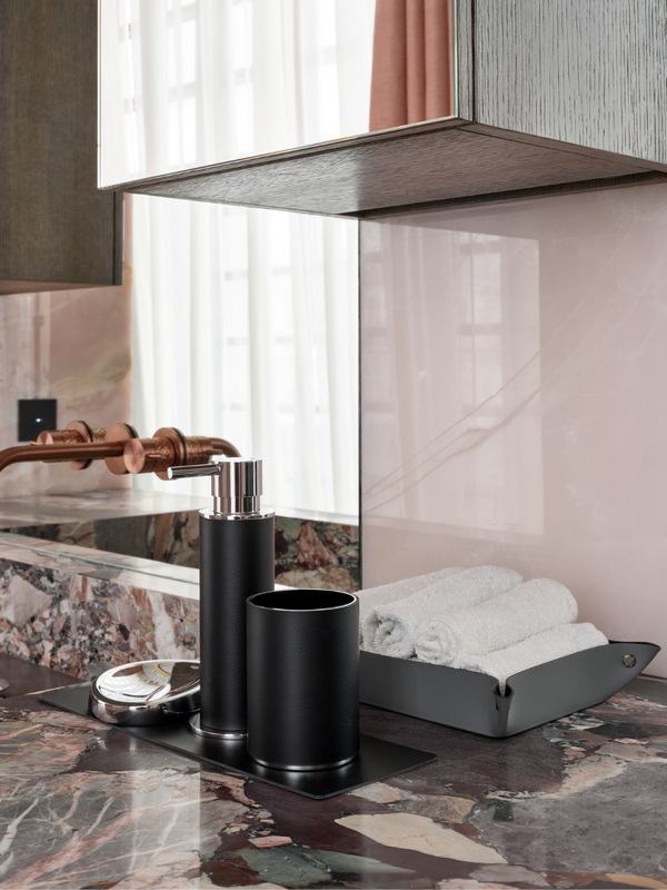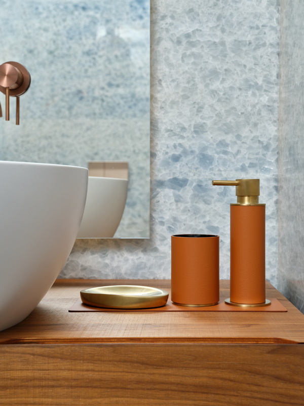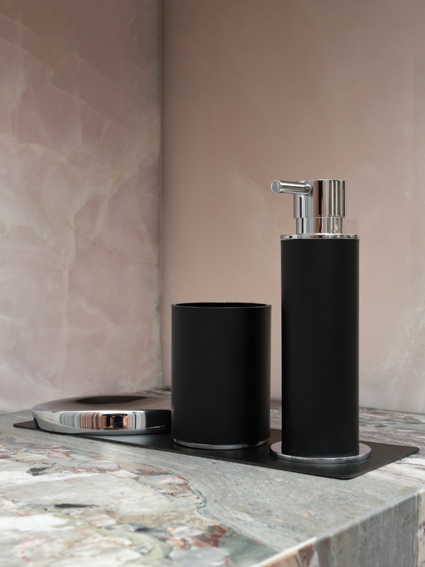 Натуральная кожа в ванной? Это смелое и стильное решение! Кожаные аксессуары — мыльницы, стаканы для зубных щеток, шкатулки, диспенсеры для жидкого мыла – это заявление о тонком вкусе, идеальный контраст между глянцем керамики и теплой фактурой кожи.