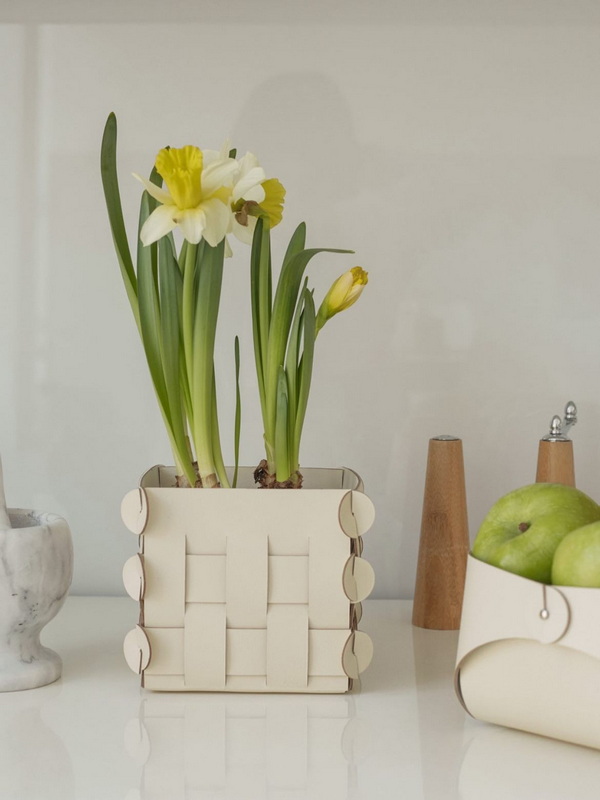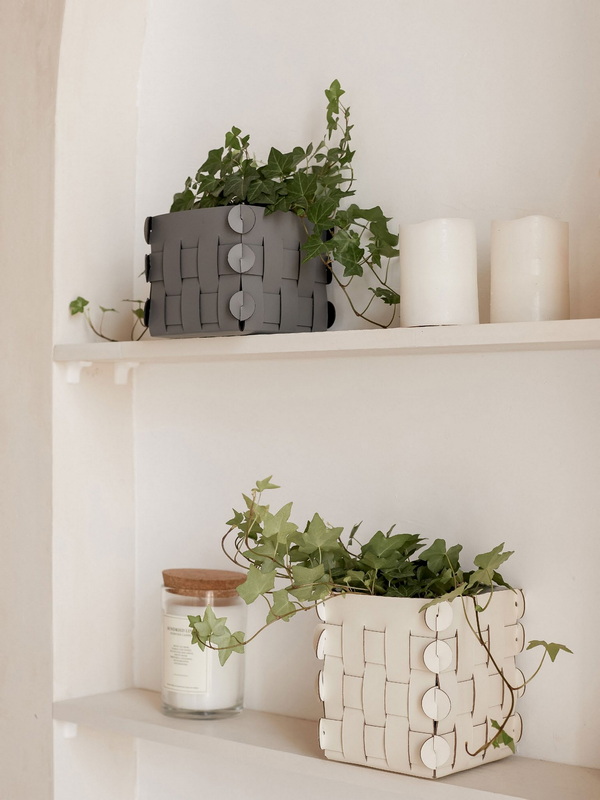 Стильные дизайнерские кашпо из многослойной кожи превосходно держат форму, не поддаются влиянию влаги и ультрафиолета, могут использоваться внутри и снаружи помещения. Они подчеркивают естественную красоту растений и добавляют фактурную глубину интерьеру.