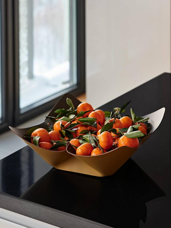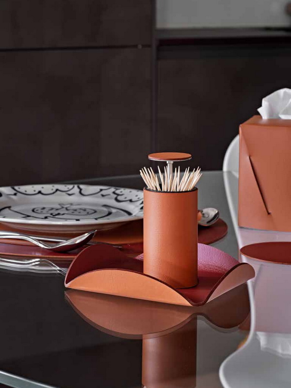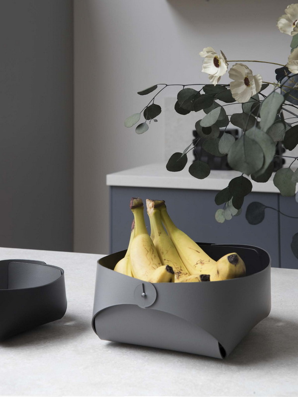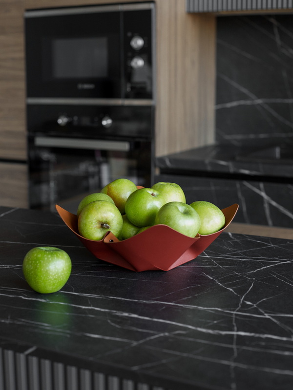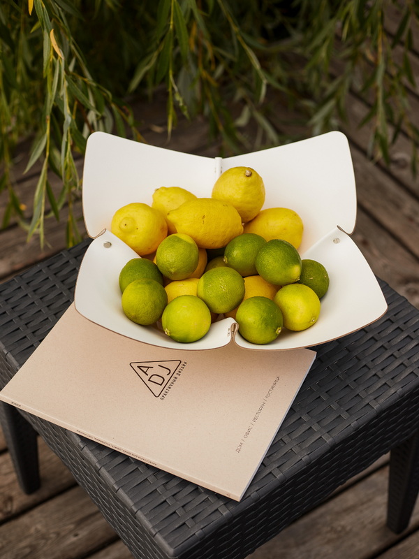 Эти аксессуары — идеальный подарок для тех, кто любит принимать гостей. Кожаная фруктовница с изящными складками добавляет сервировке неожиданный элемент скандинавского минимализма и тепла. Они красиво контрастируют с глянцем фарфора и стеклом, притягивая взгляды.